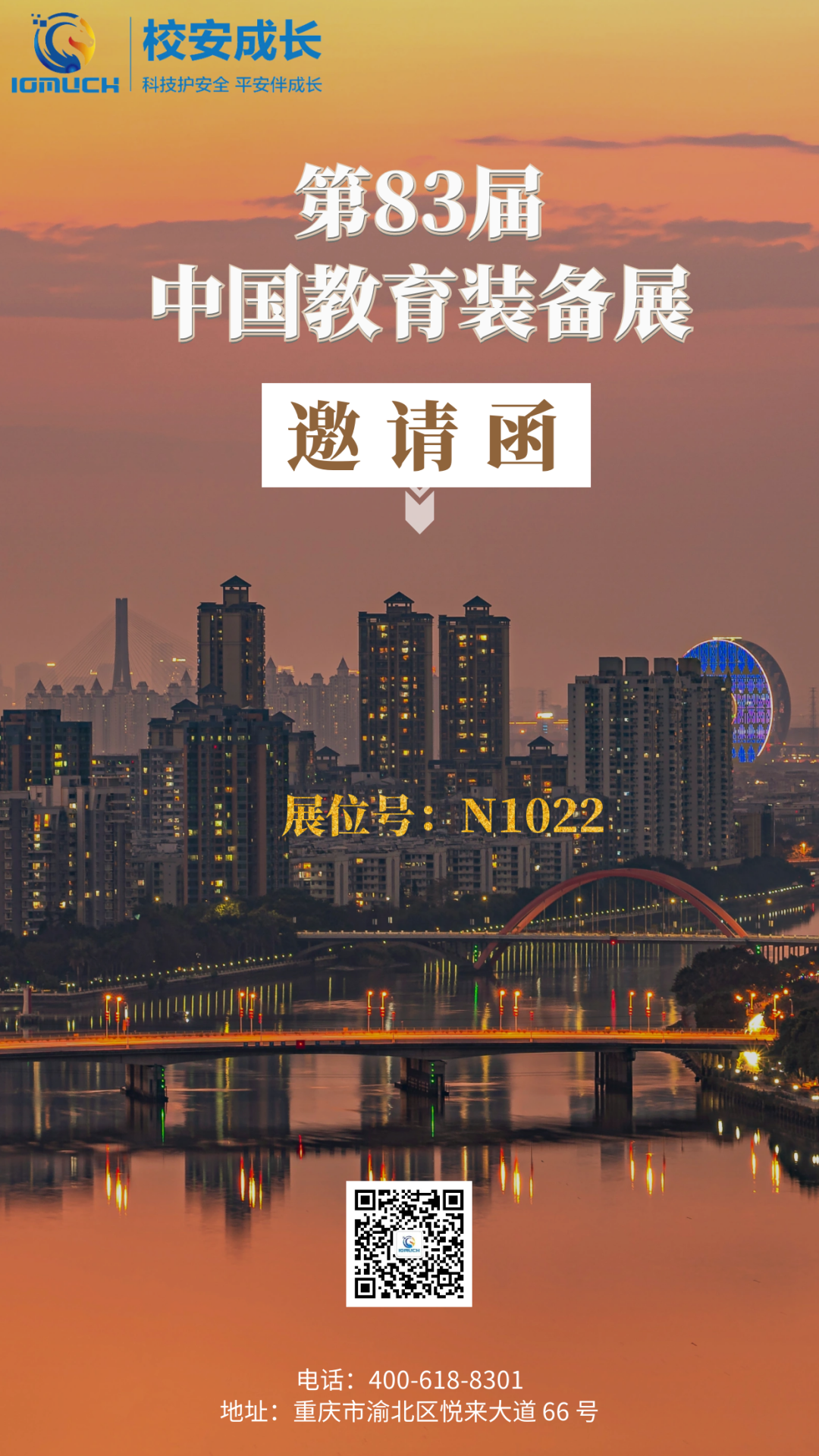 最后,校安成长诚挚邀请并热烈欢迎全国各地教育界同仁、教育装备生产经营企业和社会各界朋友,在春意盎然的美好四月,相聚在日新月异的巴渝大地,共谋教育装备事业发展的美好明天!