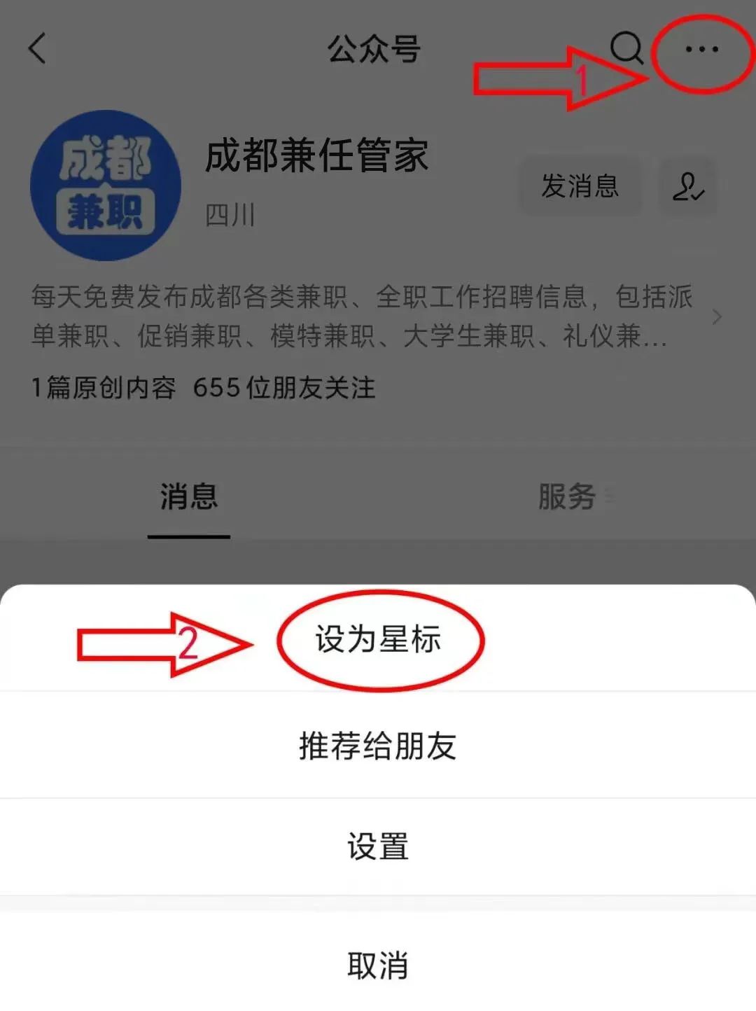 4.为了方便大家每天能及时看见招聘内容,建议按照下方步骤,把公众号设置为星标!
