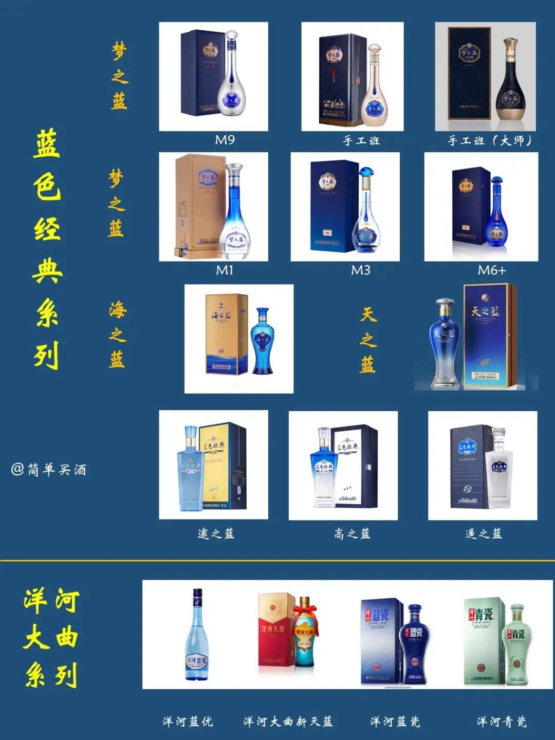 1、两个大类:洋河大曲和蓝色经典