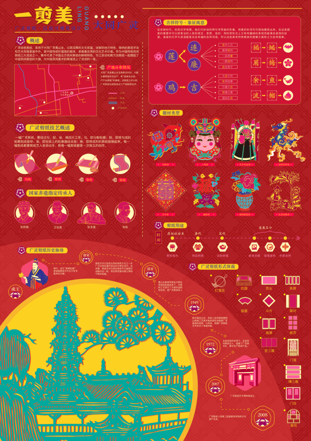 目前,太原理工大学艺术学院设计系已经为30余项山西非遗项目做了可视化设计,今后将力争为更多山西非遗重点项目设计可视化信息图谱,在全省乃至全国范围内科普和传播山西非遗。