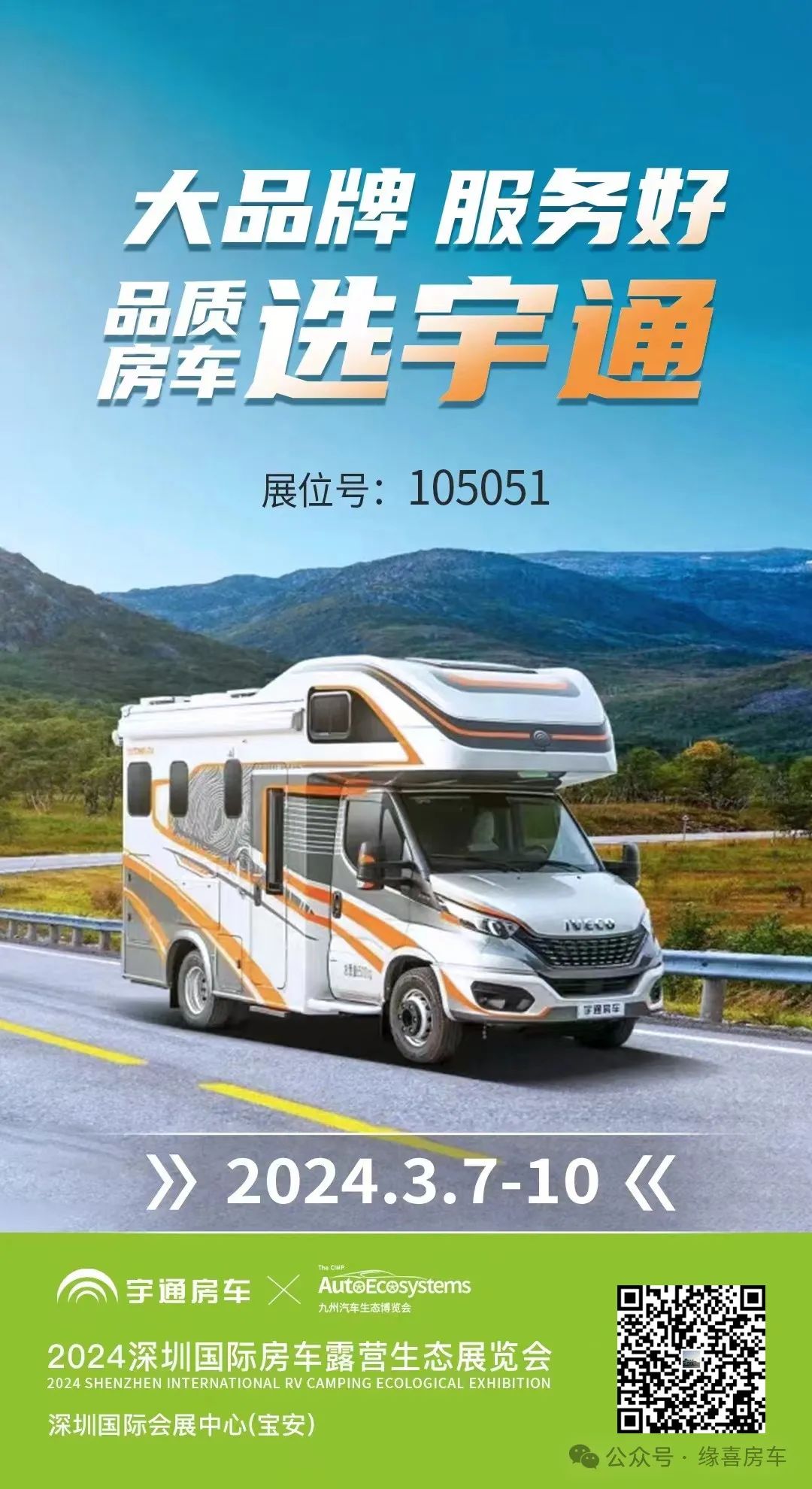 3.7-3.10 深圳国际会展中心 | 宇通依维柯小额头房车,满水满电,标准移动小居室