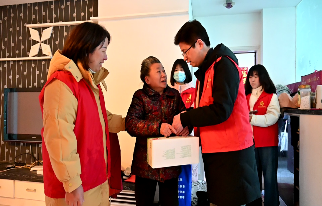 志愿者们来到独居老人家中,为他们送去米、油、牛奶等食品,帮助打扫卫生,陪老人拉家常,询问他们的身体状况以及生活上需要帮助之处,还重点检查了家中的用电设备,排查安全隐患。