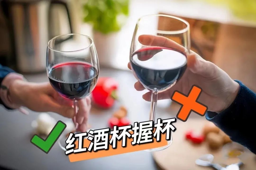 标准持杯法是用食指、中指和大拇指捏住杯脚,手的位置重心偏下;常规持杯法是将手置于酒杯底面,直接捏(托)住酒杯底座