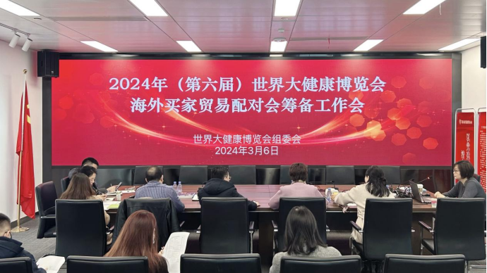 3月6日上午,为实现高质量地举办2024年(第六届)世界大健康博览会海外买家贸易配对会(以下简称配对会),世界大健康博览会组委会组织召开配对会筹备工作会议。