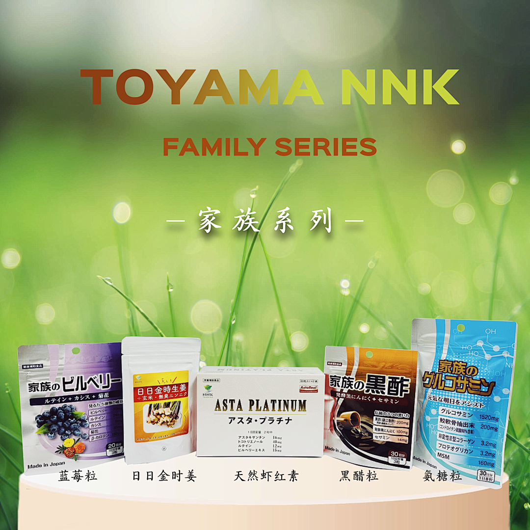 简介:NNK商社创立于2015年,是日本一家专营医疗机构所使用的机能性保健食品的公司。我司携手日本多家研发机构在母婴、介护、临床营养方案等方面都拥有独特的产品技术。我司研发的家族养生系列产品包括:硫酸氨基葡萄糖、黑醋粒、蓝莓粒、日日金时姜、天然虾红素等。
