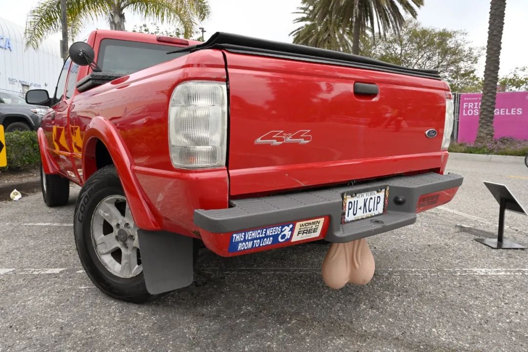 皮帕·加纳(Pippa Garner)的装置《赶紧跑!》(Haulin' Ass!,2023)也是一件瞩目之作。一辆 2003 年的红色福特 Ranger,前后颠倒 180 度后重新安装在底盘上,在博览会期间令人不安地绕着圣莫尼卡机场行驶。