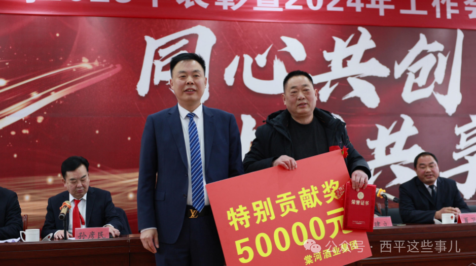 针对2023年度的工作总结及2024年度的工作安排,董事长常文辉作了热情洋溢的讲话。常文辉指出,2023年,是全面贯彻落实二十大精神的开局之年,也是落实“十四五”规划的冲刺之年,更是疫情防控后经济复苏的一年,对每个行业和个体都是极为不易,极为不平凡的一年,也是棠河最具有挑战性的一年。这一年,在各级党委、政府的坚强领导下,在社会各界的鼎力相助下,在广大客商的大力支持下,棠河人不忘初心,奋发有为,积极推动棠河高质量发展,棠河酒文化产业园顺利通过国家级3A级景区验收,并入选2023年度全省乡村文化和旅游带头人名单,公司先后被授予高新技术企业、省级文明诚信单位,省基层工会规范化建设示范点。“棠河酒之韵”被认定为第五届中国碳交易市场发展论坛、2023中国企业家博鳌论坛(数实融合)接待用酒,棠河集团旗下的浩欣鲈鱼孵化基地成功创建国家级水产绿色健康和生态养殖示范基地。 常文辉最后强调,棠河人始终坚持党的领导,始终坚持艰苦创业的优良传统,始终坚持敢为人先,永不言败的棠河精神,以完成棠河全面复兴为指引,以豫酒振兴,棠河先行为方针,以山水棠河树标杆,纯正浓香立典范,实施“棠河酒之韵、棠河敬系列、嫘祖故里”三品战略,着力推动棠河酒之韵、棠河敬系列、嫘祖故里系列酒融合发展,三品联动,定向推动,逐步打造形成三品三高引领发展的良好态势,坚决完成在根据地市场的全面回归,实现棠河的全面复兴,力争实现集团产值突破2.9亿元,白酒板块实现产值突破1.5亿元,在行业内在目标市场全面实现“市场占有领先、公司治理领先、质量技术领先、品牌文化领先、人力资源领先”的总体发展目标,为棠河更好更快的发展坚实的根基。