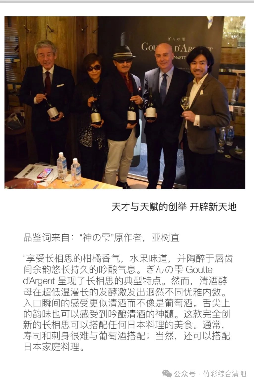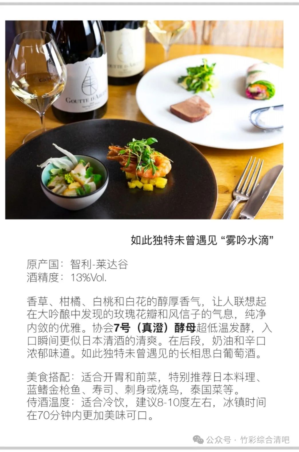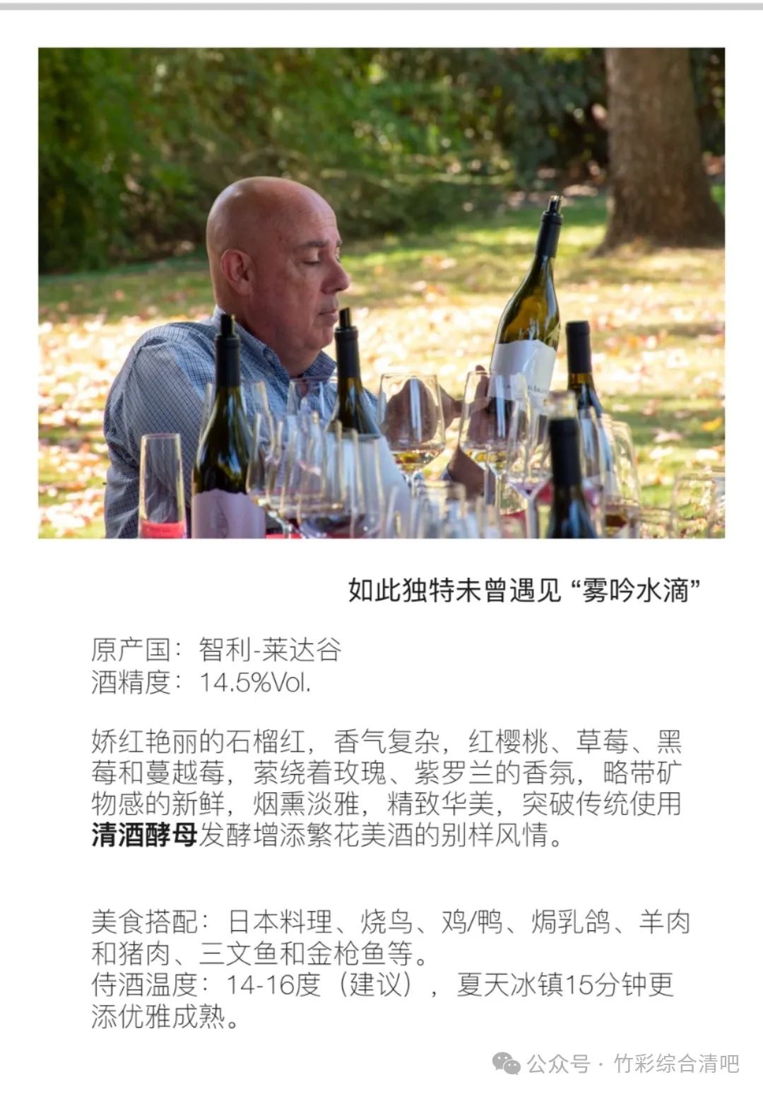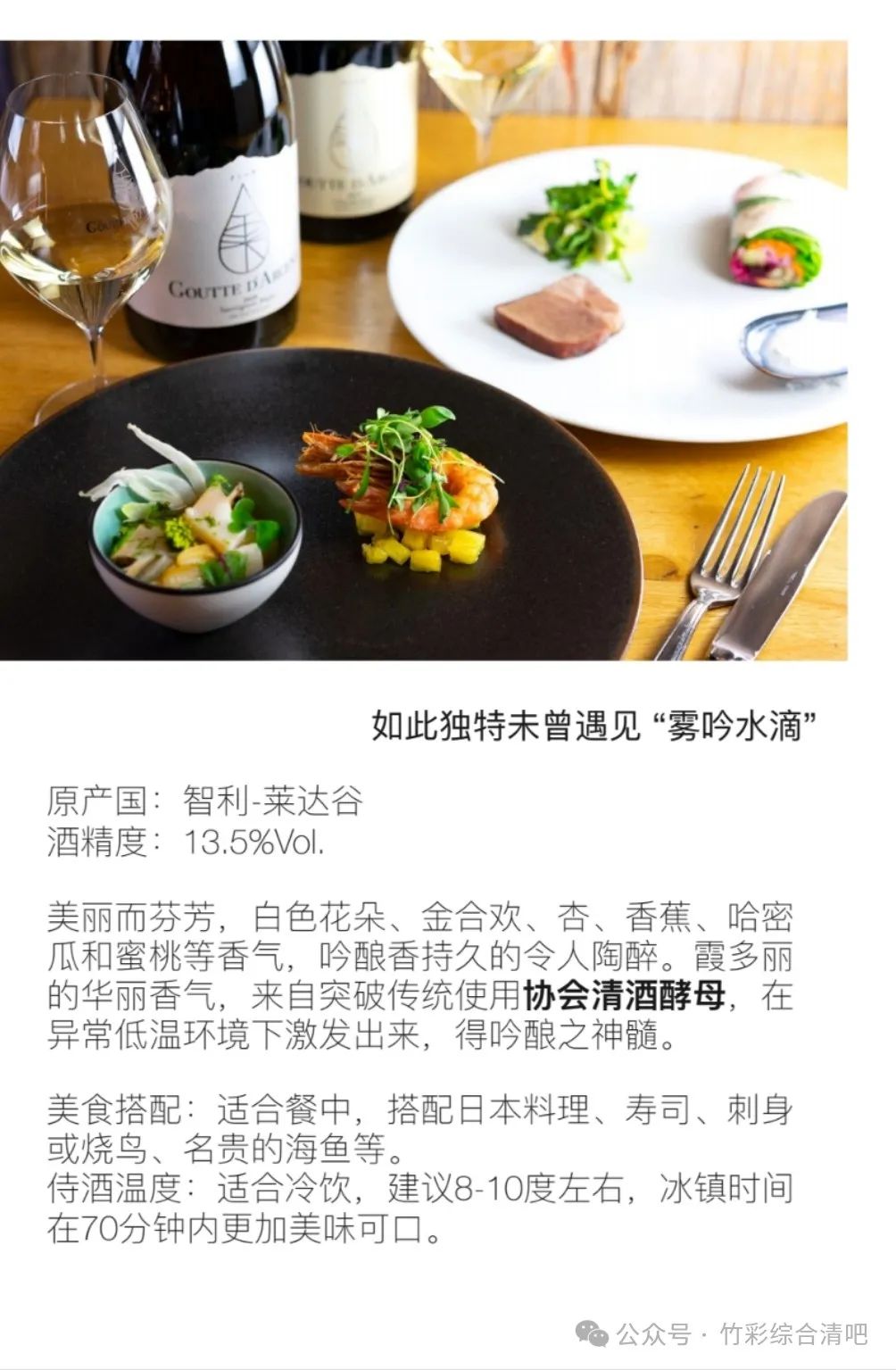 咳咳,回归正题,这个系列的三款酒我是在去年喝到的,当时Patrick带来给我的时候,我一看到“水滴”的酒标就被吸引了,一听他说这是著名酿酒师 Pascal和神之水滴的作者亚树直、“獭祭”创始人樱井博志联手打造的,立马就催促他让我尝一口,果然当场就被惊艳了,用清酒酵母去做葡萄酒,这如果放在传统的法国意大利名庄会很奇怪,风格难以契合,甚至有可能被认为是缺陷,但是在智利,这种通常花果香四溢、清新宜人的新世界产地,我只能说是天作之合,天衣无缝,天…天天向上~