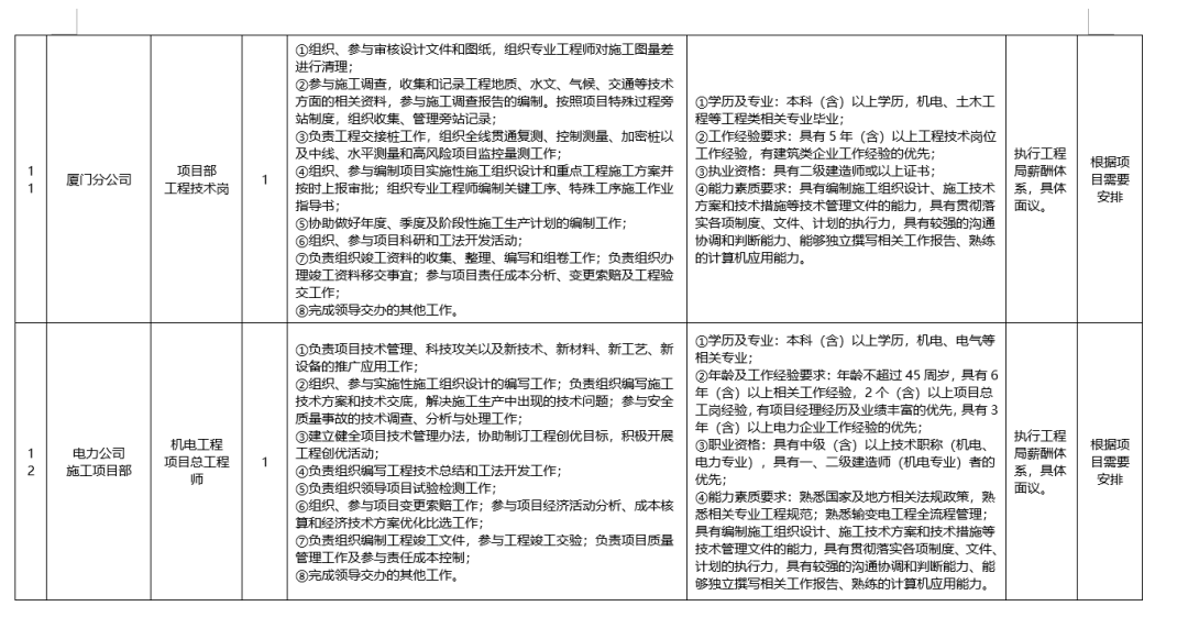 (五)厦门分公司项目部工程技术岗1人