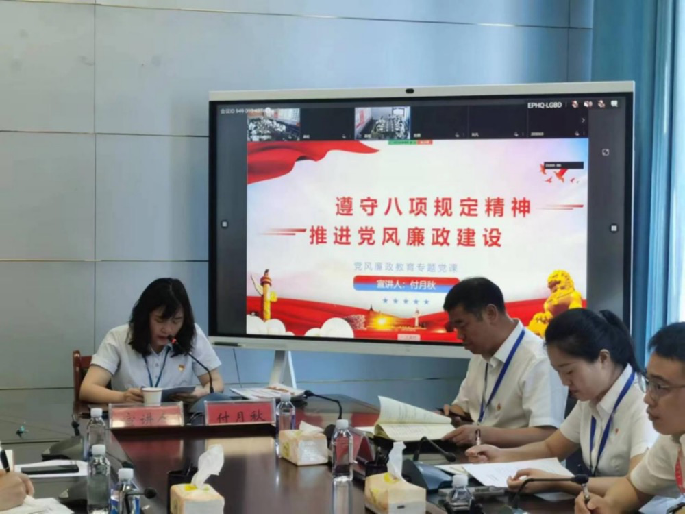 付月秋同志在党课上强调,全面从严治党永远在路上,党的自我革命永远在路上,决不能有松劲歇脚、疲劳厌战的情绪,坚持以严的基调强化正风肃纪,锲而不舍落实中央八项规定精神,持续深化纠治“四风”,坚持不敢腐、不能腐、不想腐一体推进,以零容忍态度反腐惩恶,决不姑息。通过典型案例警示教育,让广大员工增强反腐败斗争意识,筑牢防线、守住底线、远离红线,把严的基调、严的措施、严的氛围长期坚持下去,推动落实中央八项规定精神由徙木立信到化风成俗。