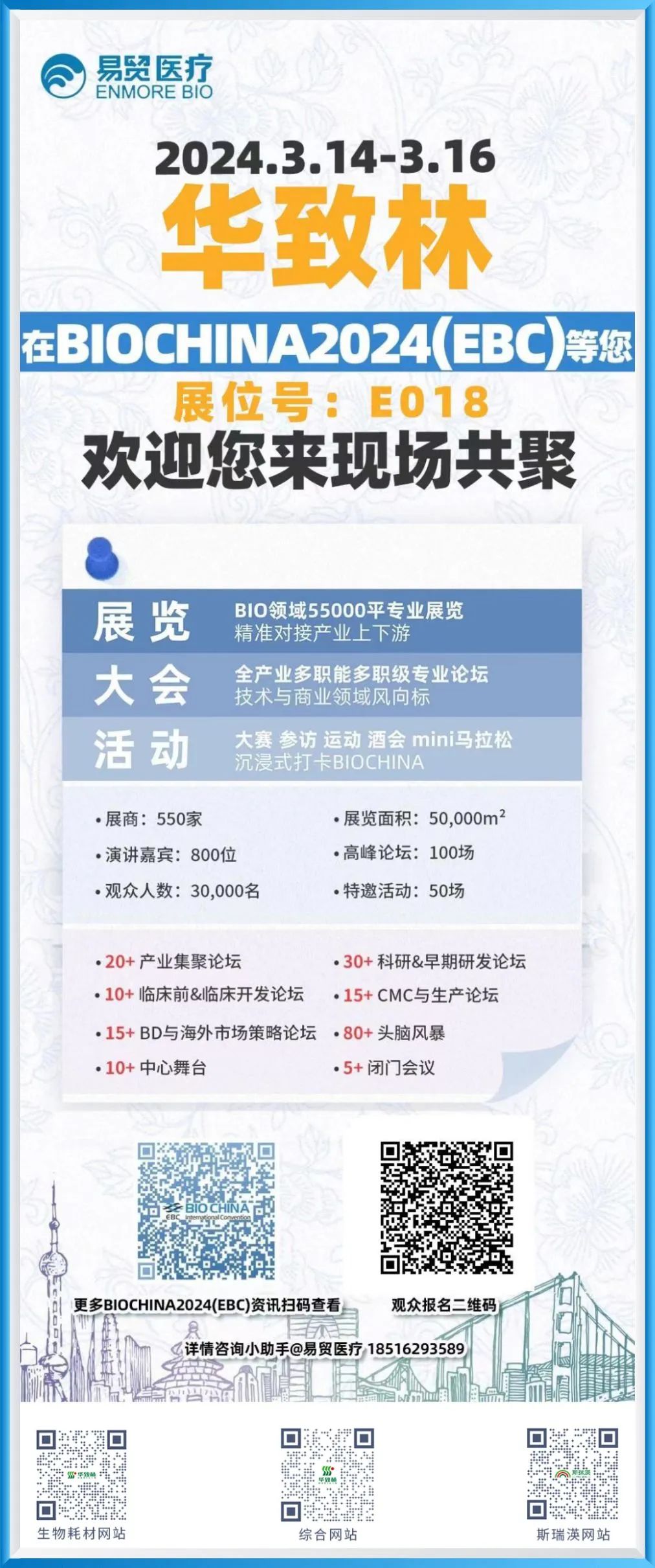 山东华致林医药科技股份有限公司将于2024年3月14日-16日参加易贸生物产业展览(BIO CHINA)