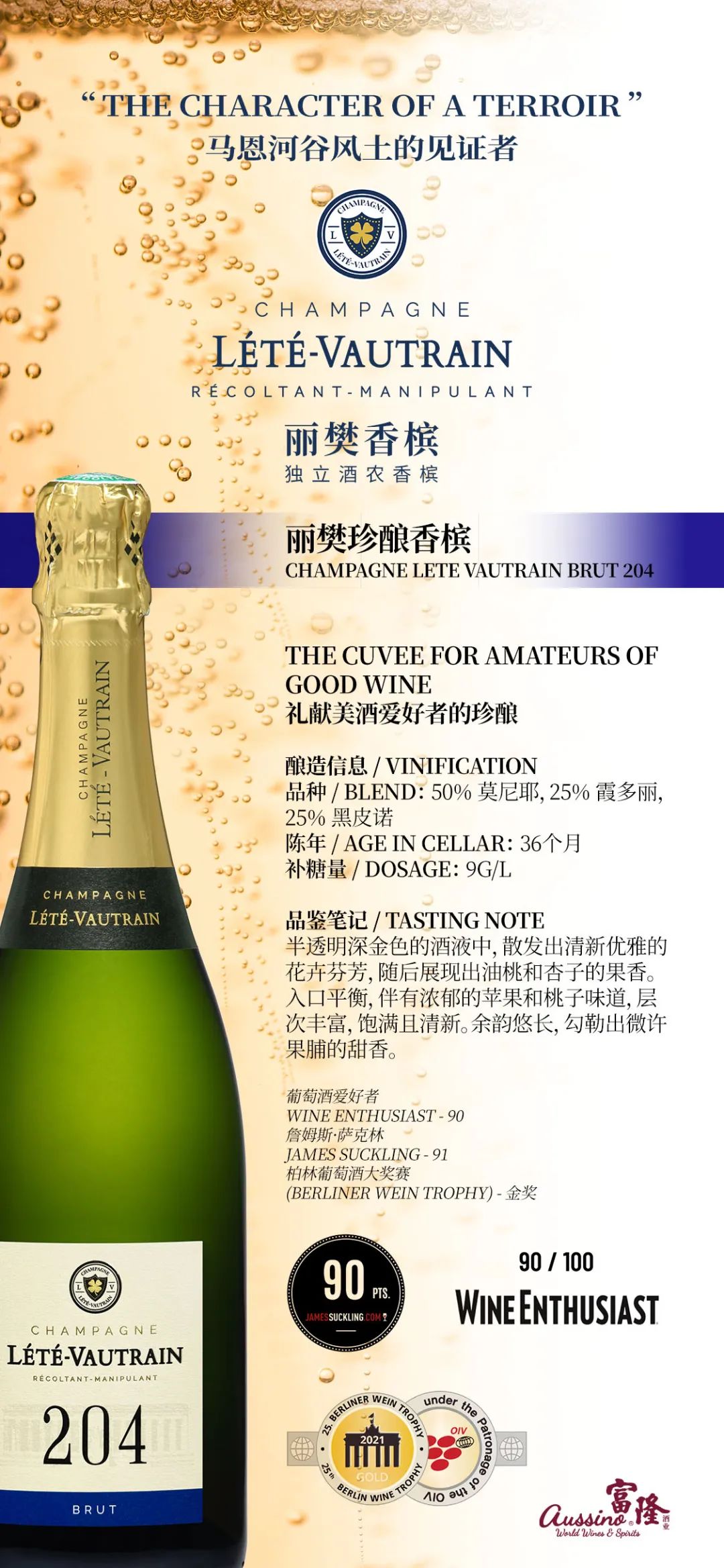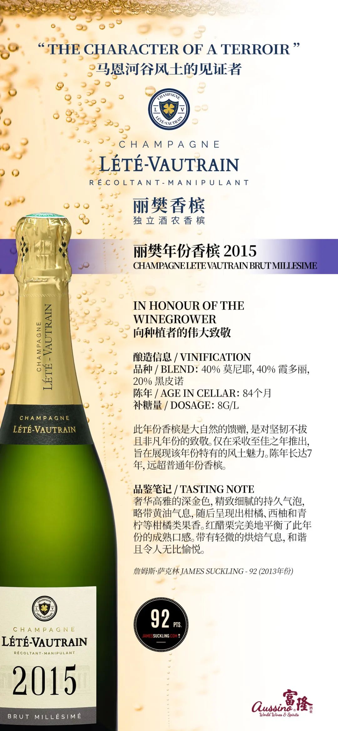 富隆酒业近期新增代理法国香槟区的小农香槟品牌:丽樊香槟 Champagne Lété-Vautrain。