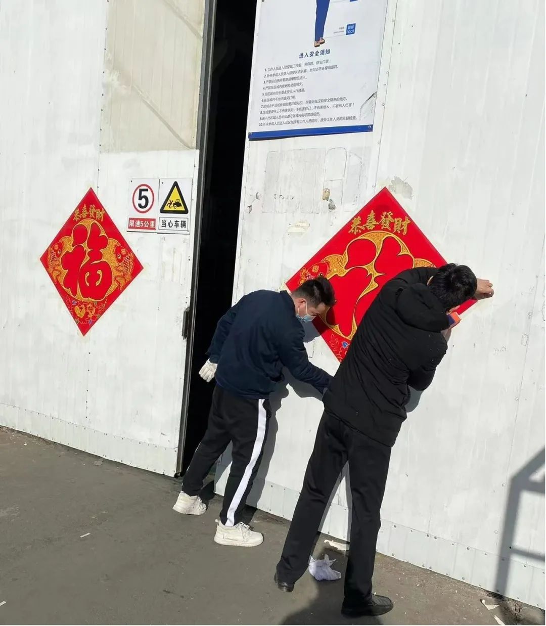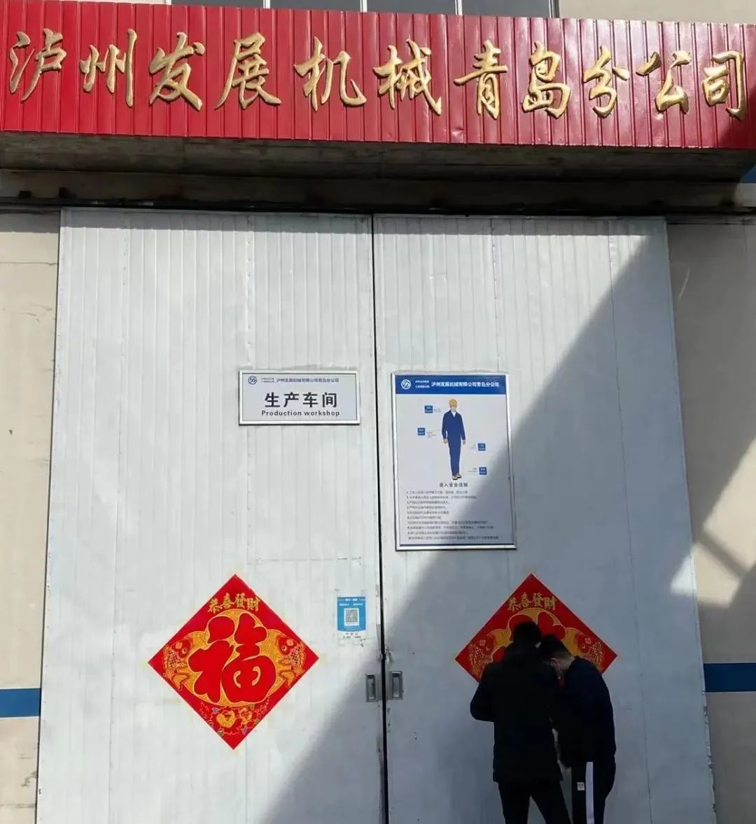 贴福字,机械公司青岛分公司“福”气满满迎新年!