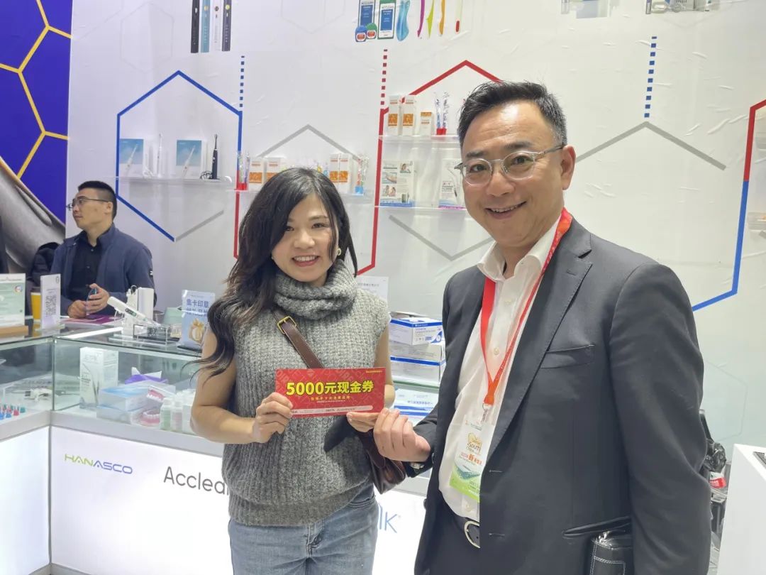 汉瑞祥展会现场开启抽奖活动,现场幸运儿分别抽中一等奖5000元现金券、高速手机、电动牙刷、预防礼包、咖啡券、汉瑞祥吉祥物等等。