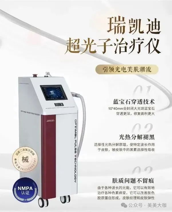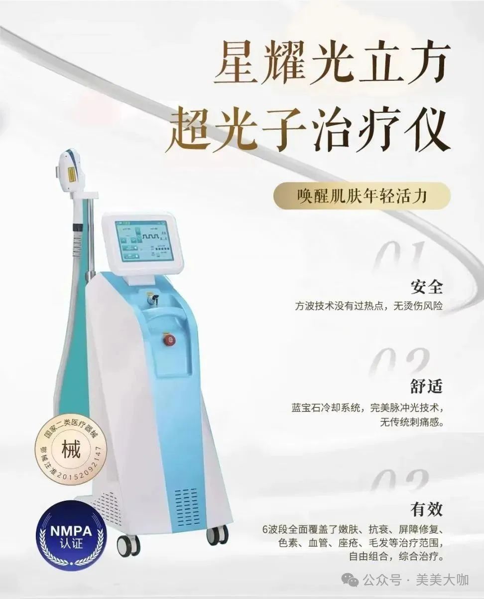 设备属性:全公国认的王项牌目,治疗维养双合一,改善肤色肤质肤龄,舒适度高不结痂无恢复期