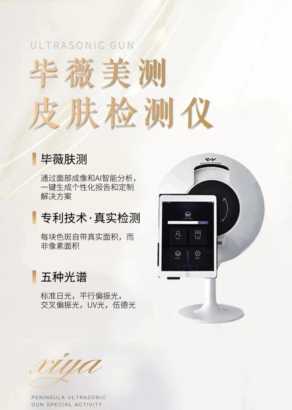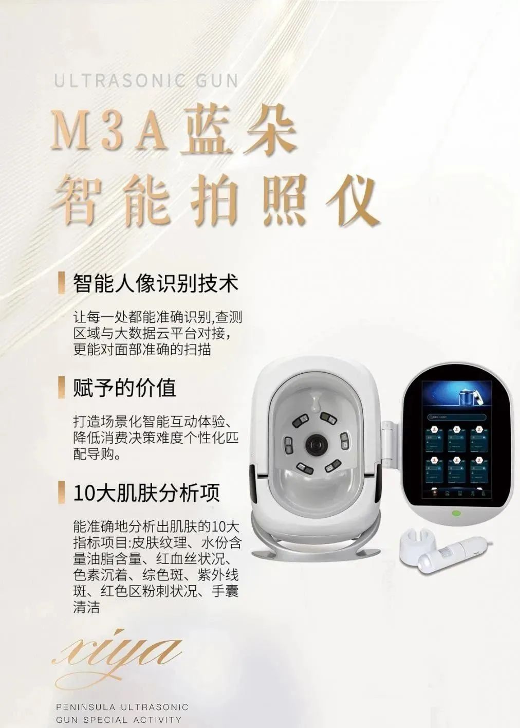 设备优势:面部扫描,肤况解析,量化报告,追踪记录