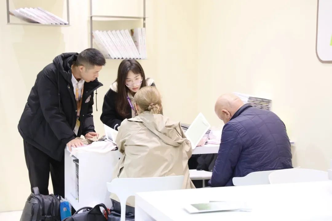 与此同时,我们的业务团队热情周到地接待每一位到访的客户,并详细介绍产品的特点和优势。集团的团队深知,服务和品质是企业立足市场的关键,我们将继续努力,不断提升产品品质,研发纱线新品,为广大客户提供更好的产品和服务。