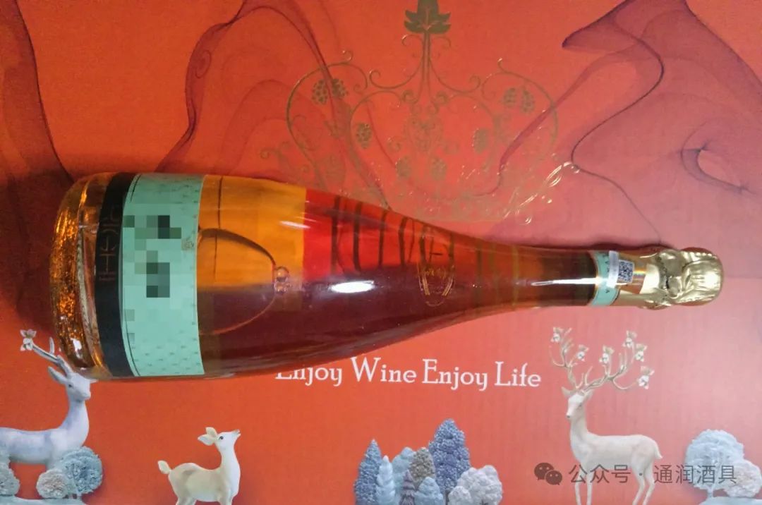 因为起泡酒容易被紫外线伤害,大多数这种酒瓶都是绿色或者棕色的。完全透明的起泡酒瓶则多用于桃红起泡酒,有时出厂时还要搭配礼盒。