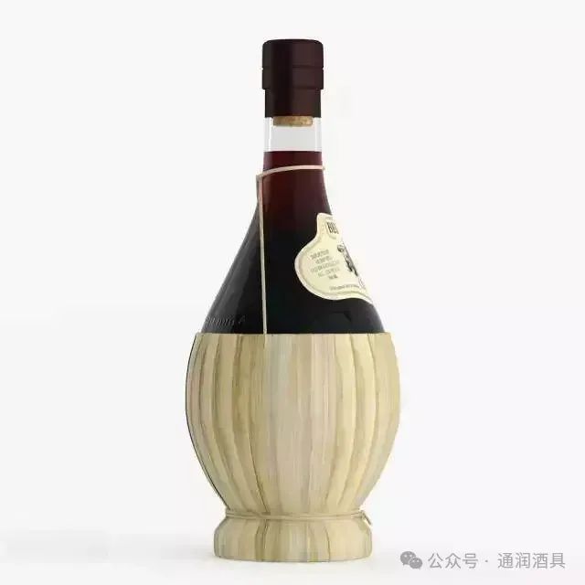 这是意大利Chianti地区非常传统的一种酒瓶。酒瓶是圆的,需要绑在稻草篮上才能站稳,看起来非常有乡村特色。如今绝大多数的Chianti葡萄酒都采用波尔多瓶形,但还有一些酒庄使用。