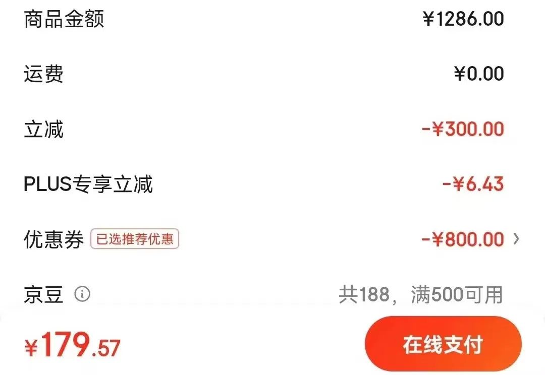旗舰店,原价1286元,领800元券,再叠加满1200-300元和Plus立减6.43元,实付179.5元到手6瓶,1.3折拿下!