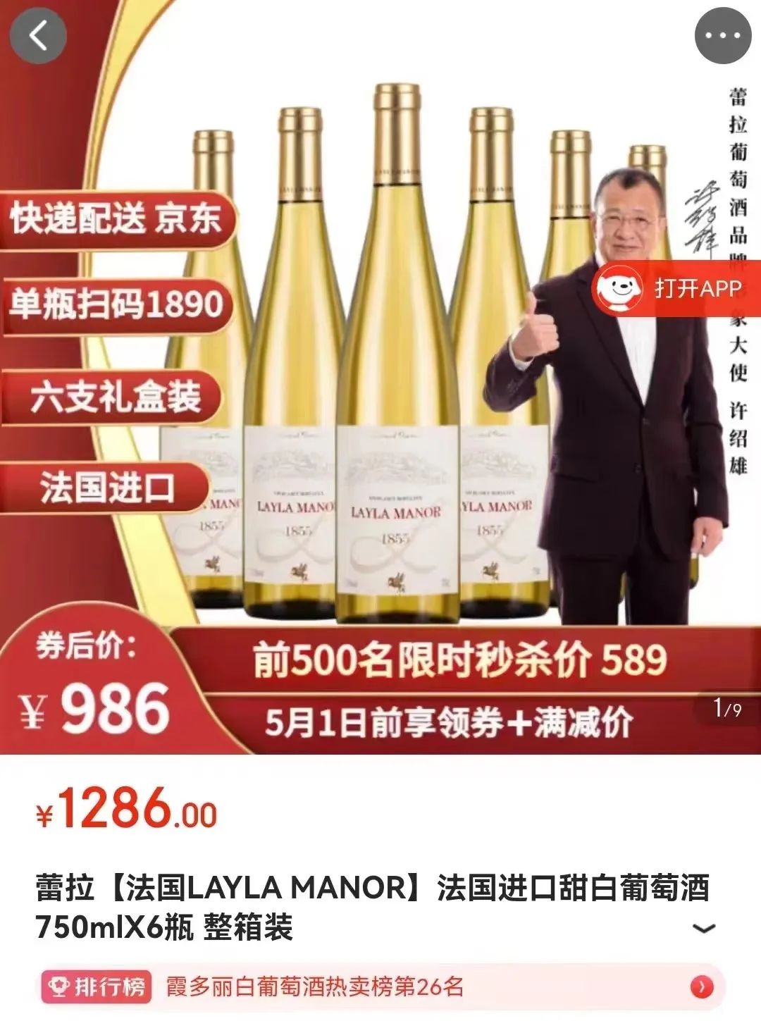 1、1.3折拿下!法国进口甜白葡萄酒 6瓶,179.5元