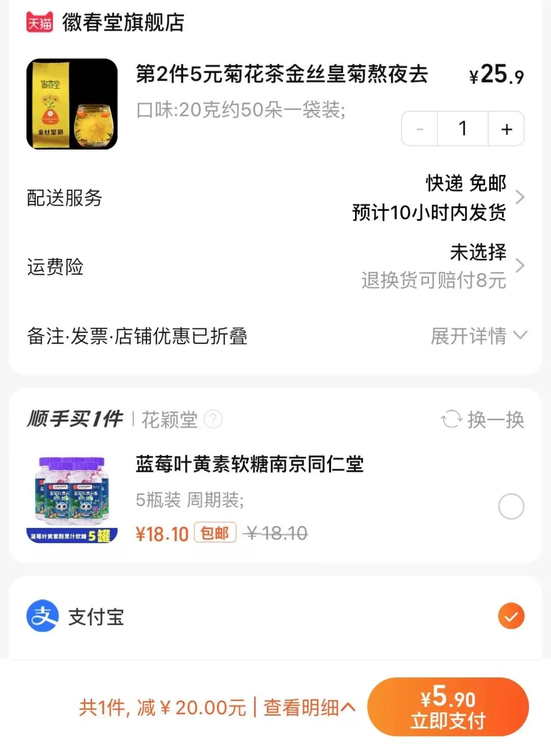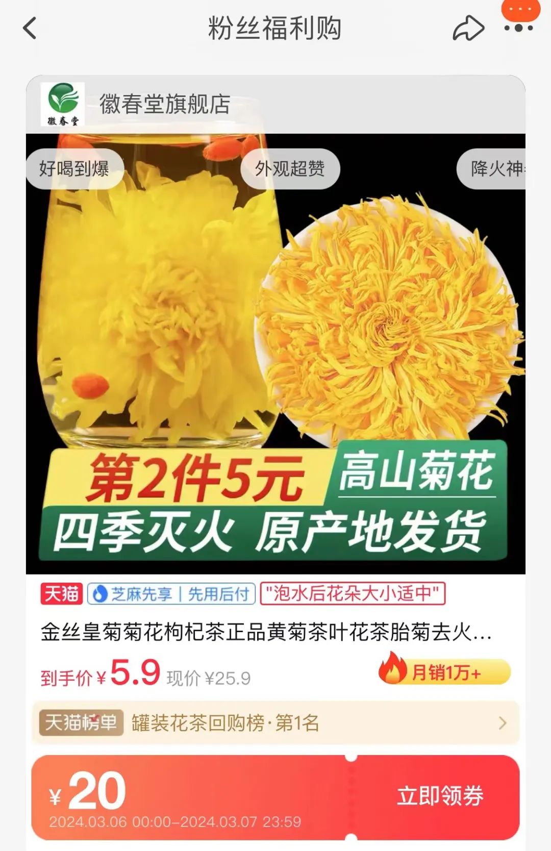 原价25.9元,领20元券下单,实付5.9元到手20g,约50朵!