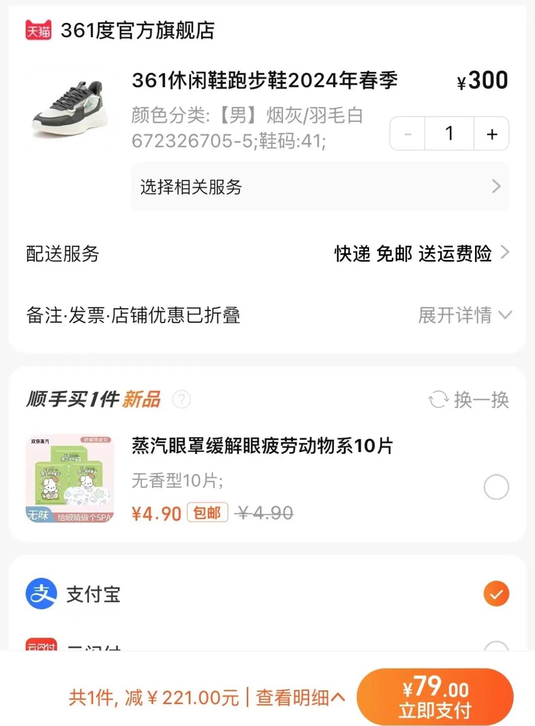 旗舰店,原价300元,领181元券,叠加满300-40元,实付79元拿下!