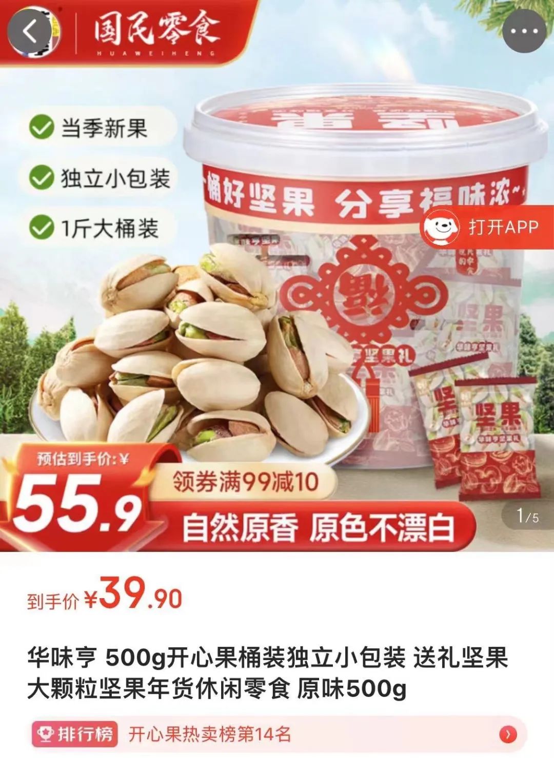 旗舰店,原价55.9元,领16元券下单,实付39.9元到手1斤桶装开心果!