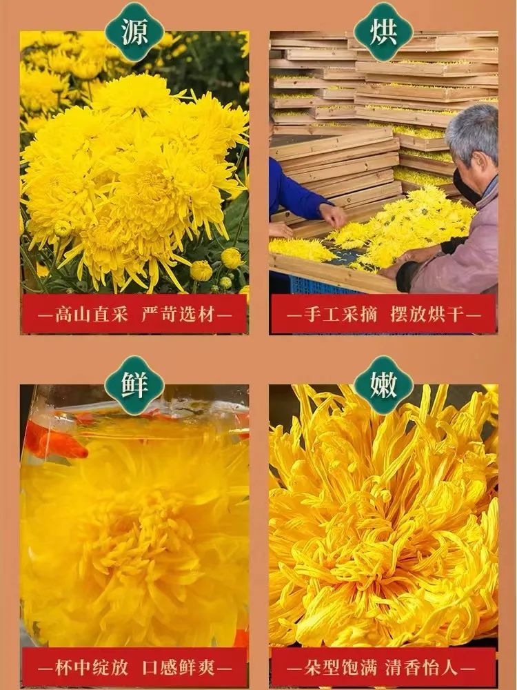 高山直采,泡开很大一朵颜值也高,口感清香,多喝菊花茶还能降降火,已经有10万+的好评了,品质放心!