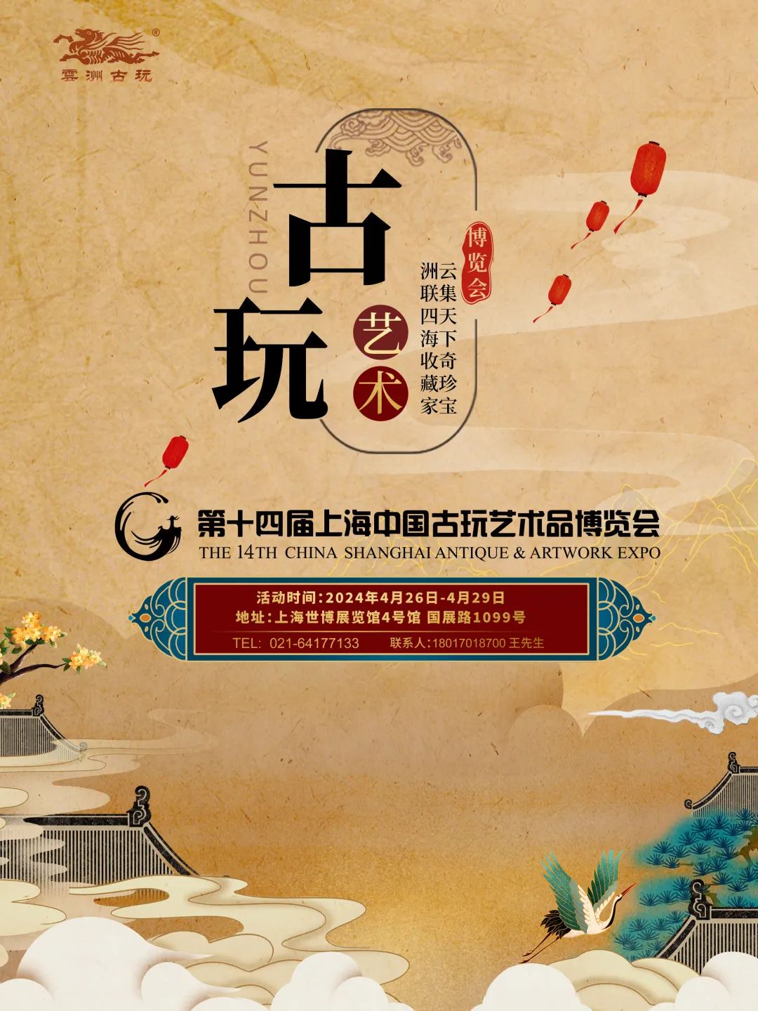 自2008年起,每年四月由上海云洲古玩城举办的上海·中国古玩艺术品博览会(以下简称古博会),已逐渐成为上海重要文化品牌之一和具备全国影响力的文物艺术品行业盛会。今年第十四届古博会将于4月26日 - 4月29日在上海世博展览馆4号馆举办。
