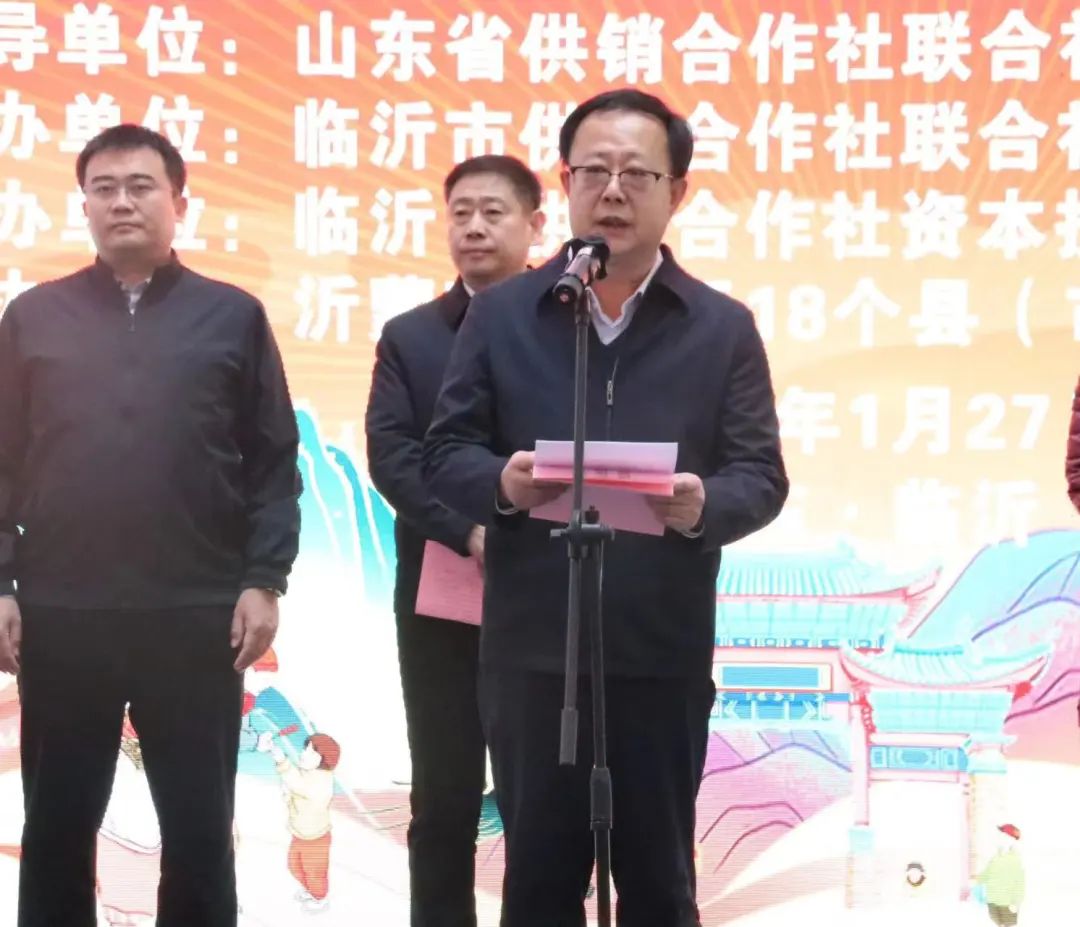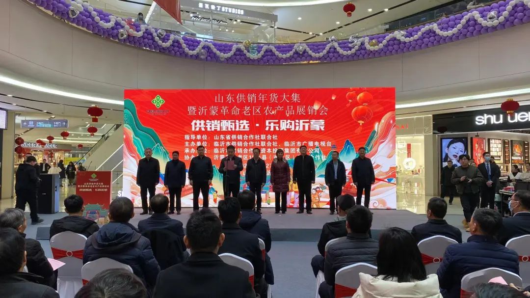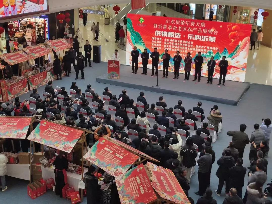 1月27日,山东供销年货大集暨沂蒙革命老区农产品展销会在临沂市泰盛广场举行。临沂市人民政府副市长、市公安局局长任泽龙致辞,山东省供销社党组成员、理事会副主任、一级巡视员于庆峰讲话并宣布开幕。临沂市人大常委会副主任冯安,临沂市政协副主席任兴业,山东省供销社现代流通处处长薛震,临沂市政府副秘书长刘朝文,临沂市广播电视台党组书记、台长王涛,临沂市供销社党组书记、理事会主任冯凡华,临沂援青干部管理组组长、青海省海晏县县委副书记、县政府副县长任崇福等出席开幕式。