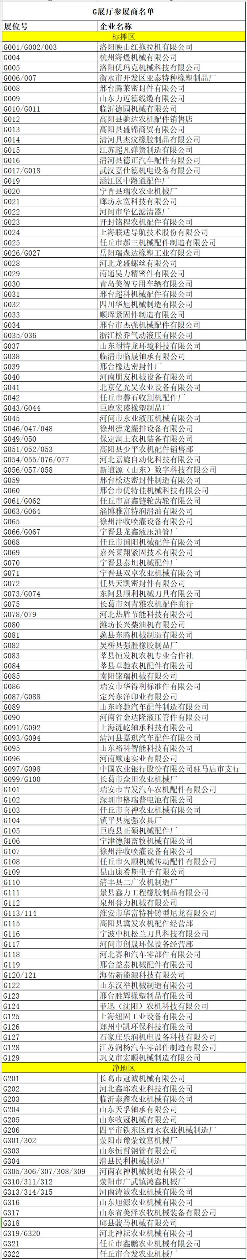 后期将陆续公布其它展厅参展商名单,可持续关注“农机网”微信公众号。