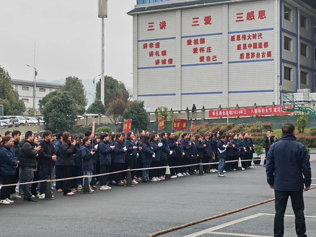 为庆祝“三八”国际妇女节,3月8日贵州怀庄酒业集团组织全体女职工开展“拔河比赛”活动在坛厂仓储包装基地成功举办。