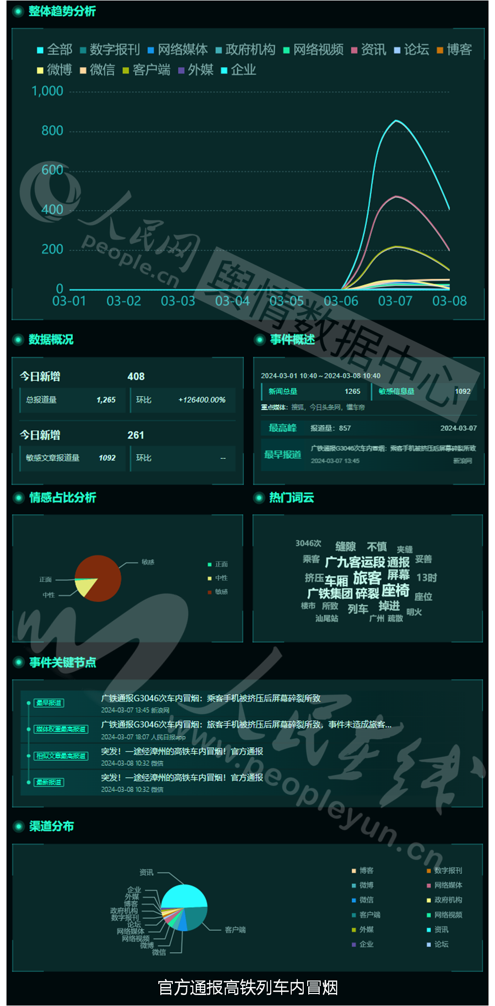 3月7日,广铁集团广九客运段官方微博发布关于“G3046次列车车内冒烟”的情况说明。说明称,2024年3月7日13时45分,G3046次即将到达汕尾站时,坐在9号车厢2A位置的旅客手机不慎掉进座椅缝隙,该名旅客在寻找手机时,转动座椅造成手机被挤压,手机屏幕碎裂并冒烟(无明火)。列车工作人员立即疏散9号车厢旅客,并将冒烟的手机取出妥善处理,情况稳定后,工作人员安抚旅客重新回到座位就座。事件未造成旅客受伤。13时54分,列车从汕尾站正点开车。话题舆情基本面如下: