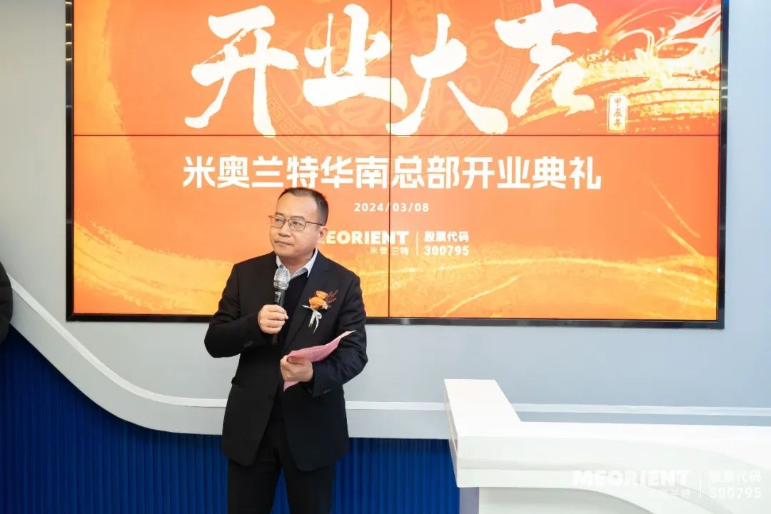 广州南沙经济技术开发区投资促进局副局长伍文普为米奥兰特华南总部开业发表致辞。他对米奥兰特华南总部的开业表达了热烈的祝贺,并强调南沙作为粤港澳大湾区及中国企业“走出去”的重要门户,凭借其独特的地理位置和“双15%”税收优惠、总部经济、骨干人才奖励等一系列强有力的政策扶持,为包括米奥兰特在内的企业提供了一片充满机遇的发展热土。同时,他表示期待与米奥兰特深化合作,借助南沙的各项优势助力企业在粤港澳大湾区乃至全球市场开疆拓土。