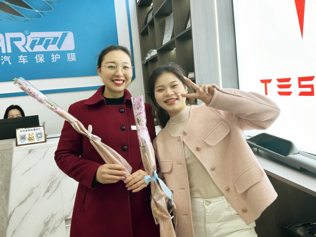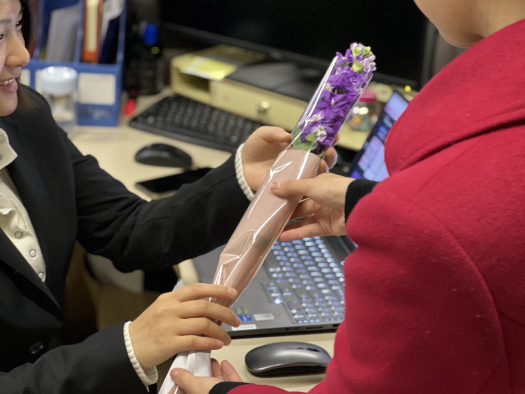 用花为女员工们送上祝福