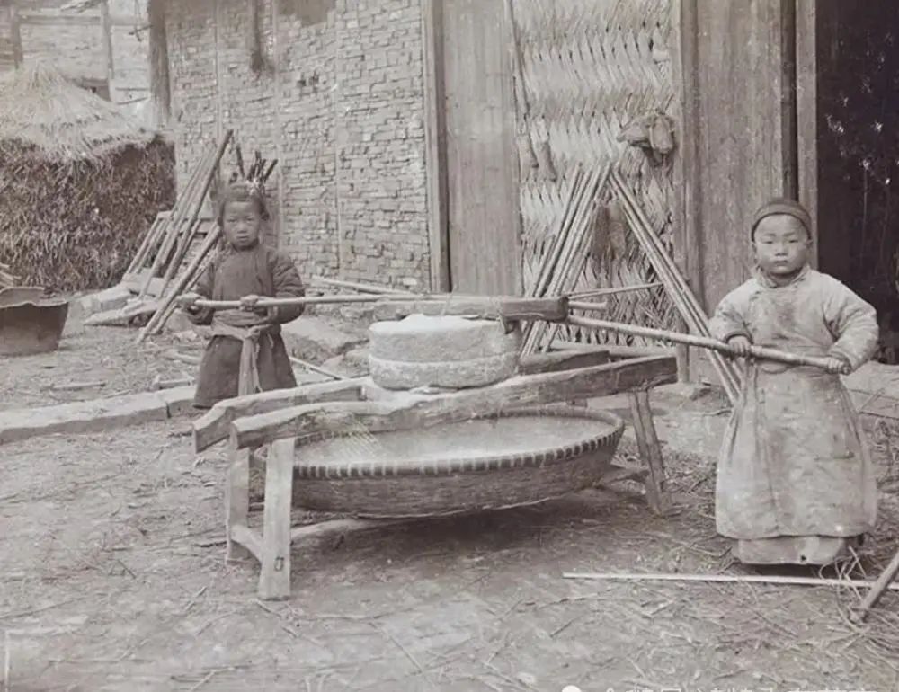 两个推磨的孩子,小小年纪就已经干起了家务活。所谓“穷人的孩子早当家”,不是因为吃不了读书的苦,而是贫寒之家根本没有能力让孩子去读书。
