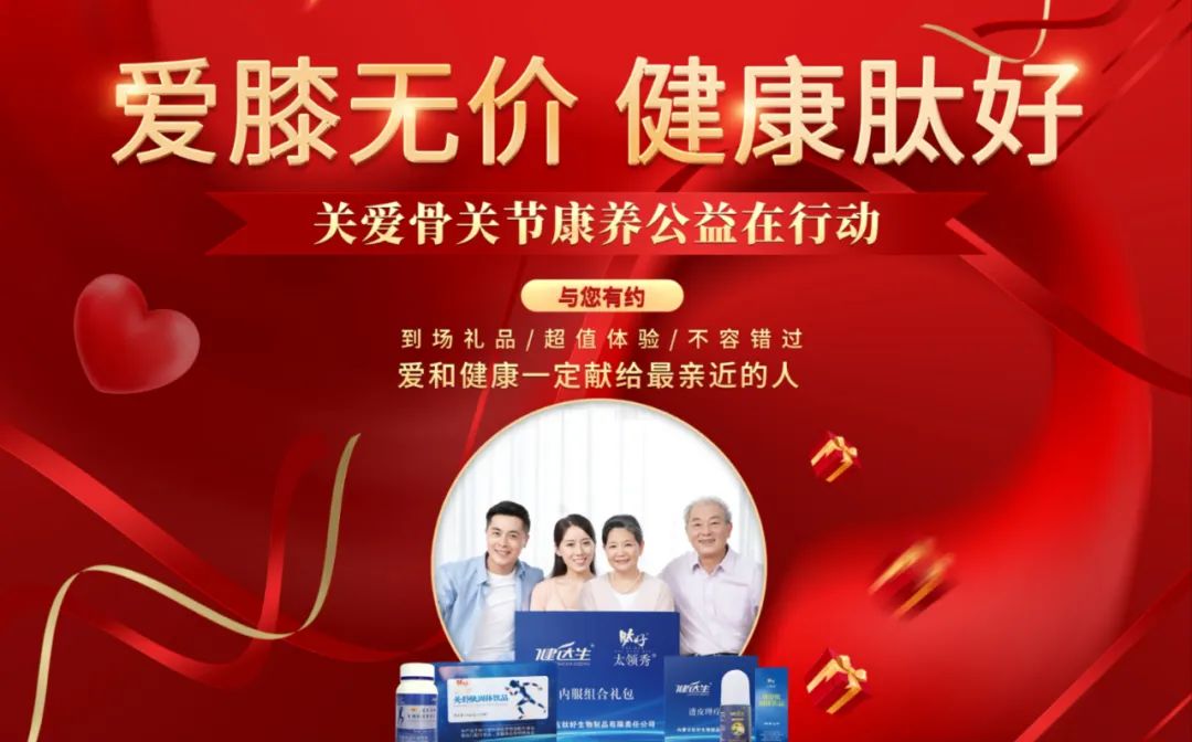 为了提升全民骨关节健康意识和关爱中老年膝关节康养服务,启动各城市康养公益活动,影响力巨大可以提升合作门店的公信力和知名度