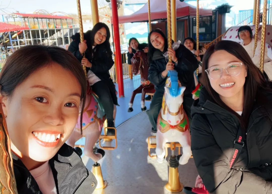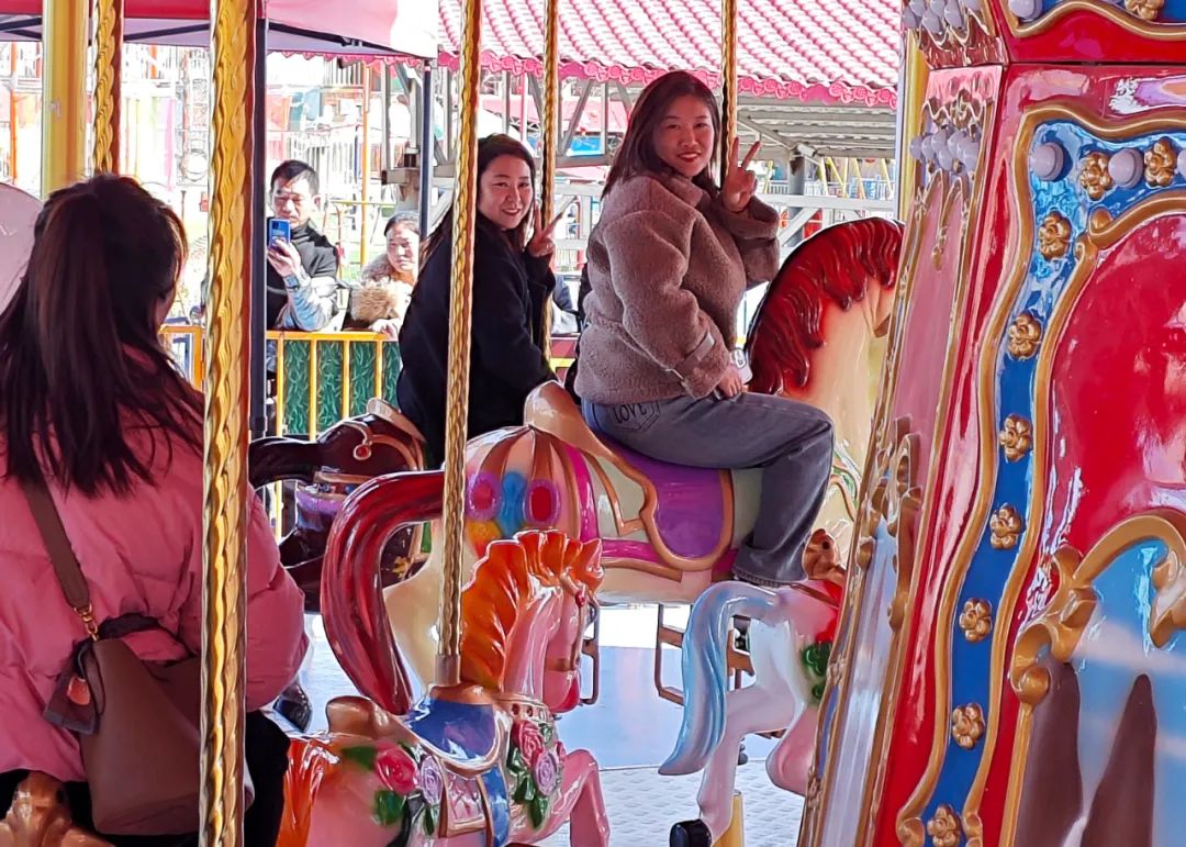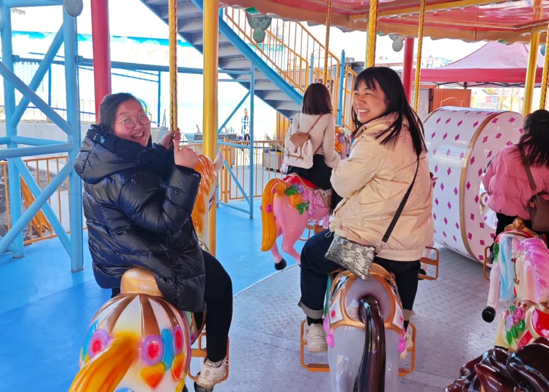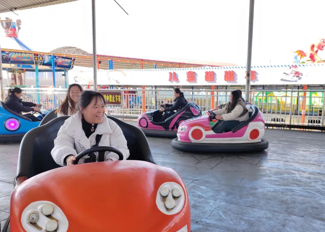 在这里,大家可以卸下身上的担子,全身心专注地去玩,仿佛找到了儿时无忧无虑的感觉,三五结伴、你拍我照,一起感受高空秋千飞起来的感觉;感受碰碰车你来我往的激情;感受摩天轮俯览大地的奇妙;感受跑马场激情飞扬的时刻……