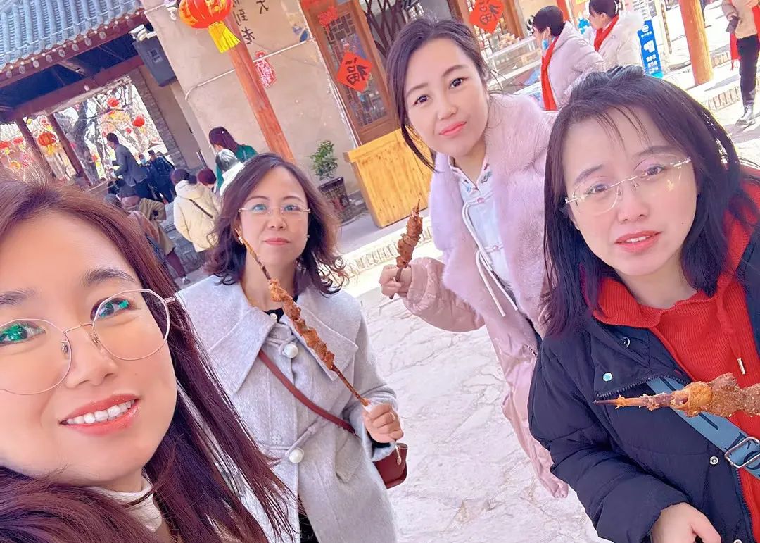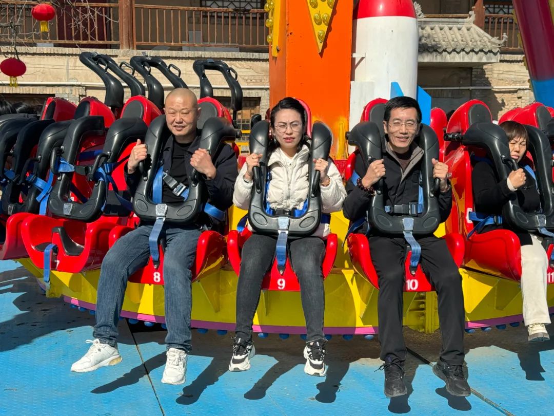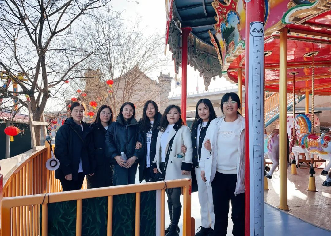 大家置身茅茨土阶,或立于诽谤木、敢谏鼓下,可感受远古文明的“第一缕曙光”。穿过“时光隧道”,在铺面林立、旗幌招展的巷陌,可重温青砖黛瓦间的市井生活;在酒香扑鼻的酒坊,可怀旧远去生活的情趣;在石碾滚动的碾坊,可找寻渐行渐远的乡愁。一路上,大家享受着古建筑与现代游艺设施的相互交错,拍照留念,欢声笑语,热情高涨,深深地被春天的气息所陶醉,感受到了节日带给她们的喜悦。