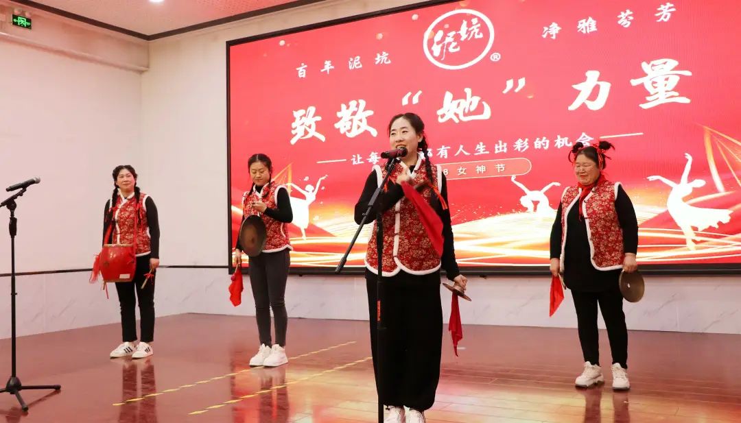 该活动以《泥坑巾帼美》视频拉开帷幕,活动现场节目丰富精彩,朗诵《泥坑人》《女人颂》《酒》、歌曲《一生有你》《祈祷》《如愿》以及集体舞蹈等节目依次登场,高潮迭起,掌声雷动,泥坑女员工们个个情绪激昂,还有经典搞笑的“三句半”节目,逗得台下观众捧腹大笑。精彩纷呈的节目体现了泥坑员工对泥坑酒的热爱之情,展现了新时代泥坑女员工积极向上的精神风貌。