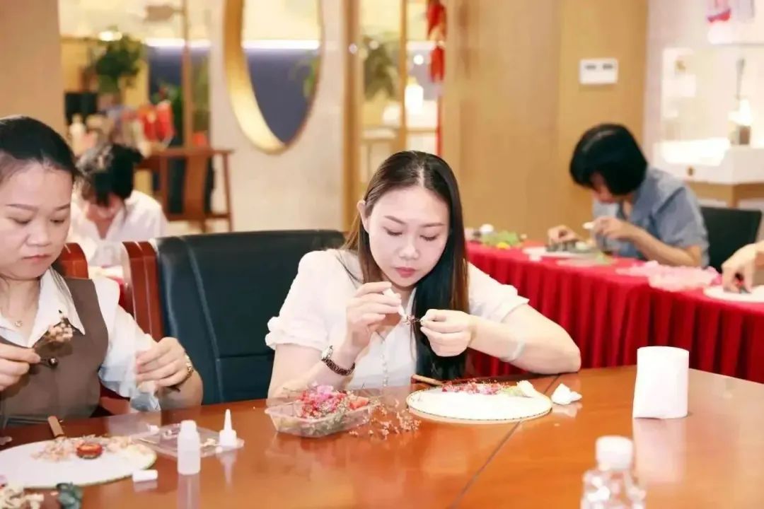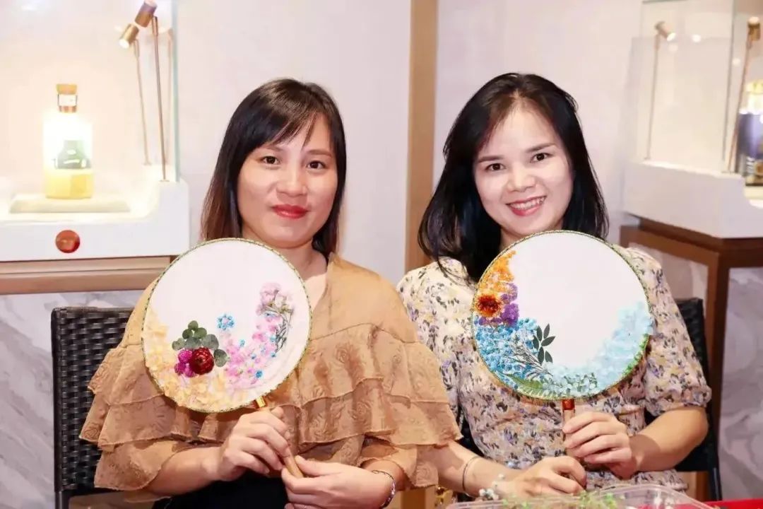 经过一个小时的精心制作,大家充分发挥创意和想象力,将形态各异的叶子和色彩丰富的干花巧妙地组合在团扇上,呈现出形态多样、纷葩灿烂的造型。这场手工艺术的邂逅,不仅让“女神们”收获了独一无二的三八节日礼物,更让她们感受到了手工艺术的魅力和创作的乐趣。
