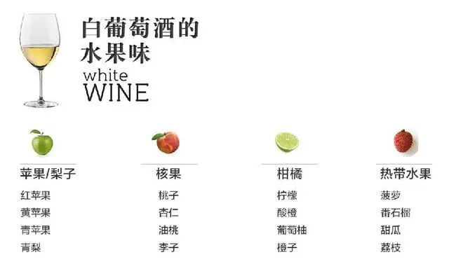 不管是什么样的葡萄酒,果味都是我们该最能理解的风味。喔对,我是指果味(Fruit)与非果味(Not-Fruit)。我们大略可以将水果味分为几个特殊领域。首先,在白酒中主要有四大种水果-苹果/李类,核果类水果,柑橘类水果核热带水果;而在红酒中,主要有黑色系水果,红色水果,蓝色水果核“杂七杂八”。