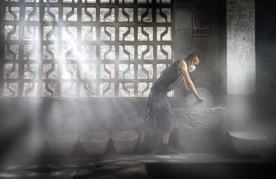 ▲董酒“百草入曲”古法制曲技艺