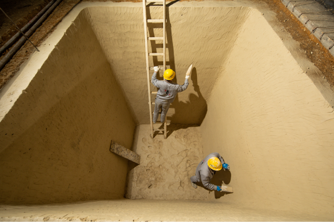 ▲董酒扩建项目一期值得一提的是,董酒大窖工艺是董酒国家保密技术的重要组成部分,且发酵时间是中国传统白酒中最长的(至少发酵18个月),香醅发酵的好坏,直接影响到基酒的质量水平。因此,在一期工程建设时,董酒就投入了大量的人力、物力、财力在大窖池制作上。