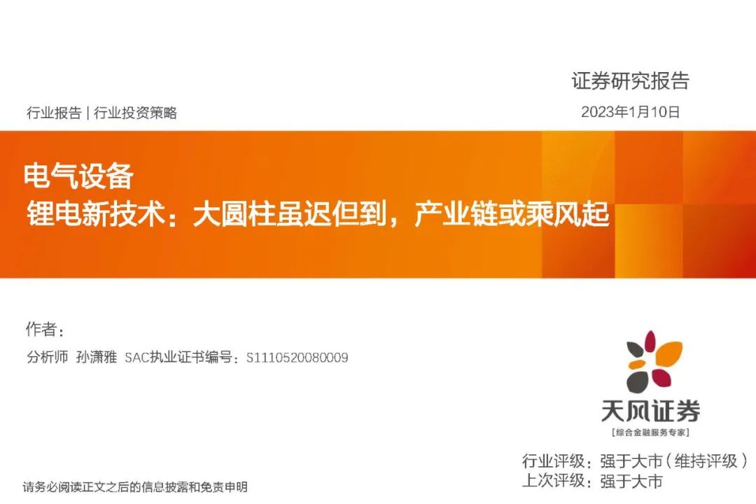 【报告3847】4680大圆柱专题-极致设计、极致安全、极致制造-中国银河