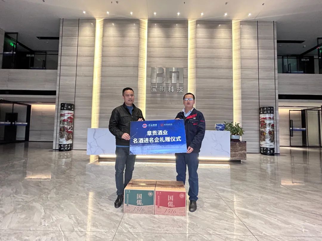 打通高端企业圈层,共寻跨界合作契机,2023年1月11日,国儒1516“名酒进名企”走进赣州市宝明显示科技有限公司,共商合作、共叙友谊。