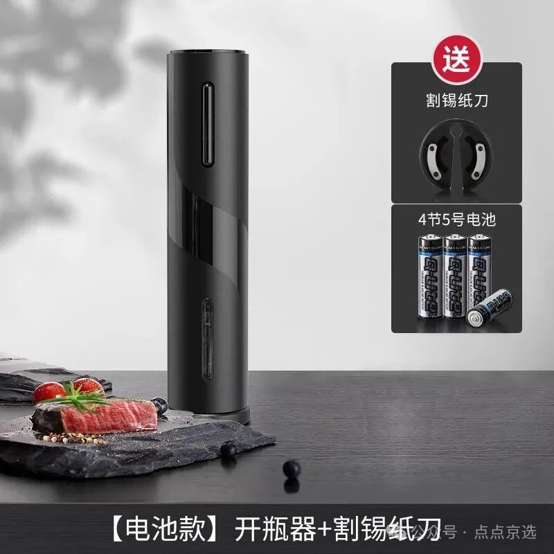 红酒开瓶器电动开酒器家用开红酒器全自动不锈钢充电款启瓶器起子 【+电池】开瓶器+割锡刀
