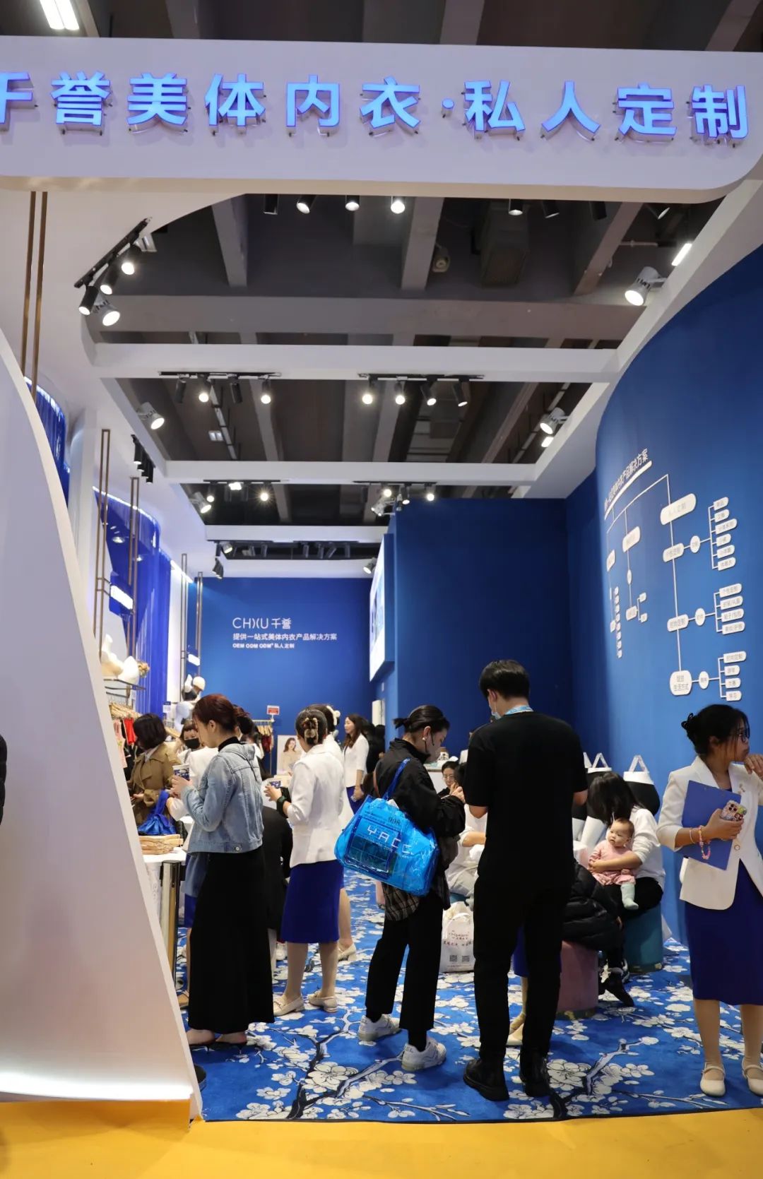 在众多展馆和美业项目中,千誉以“提供一站式美体内衣产品解决方案”成功出圈。