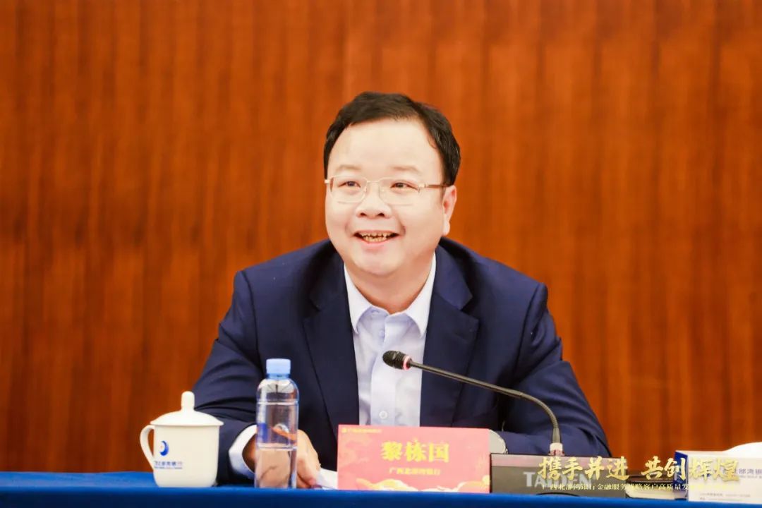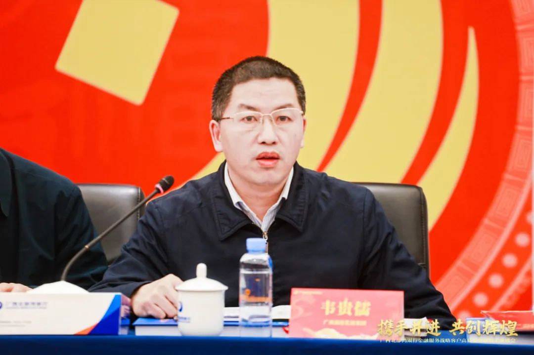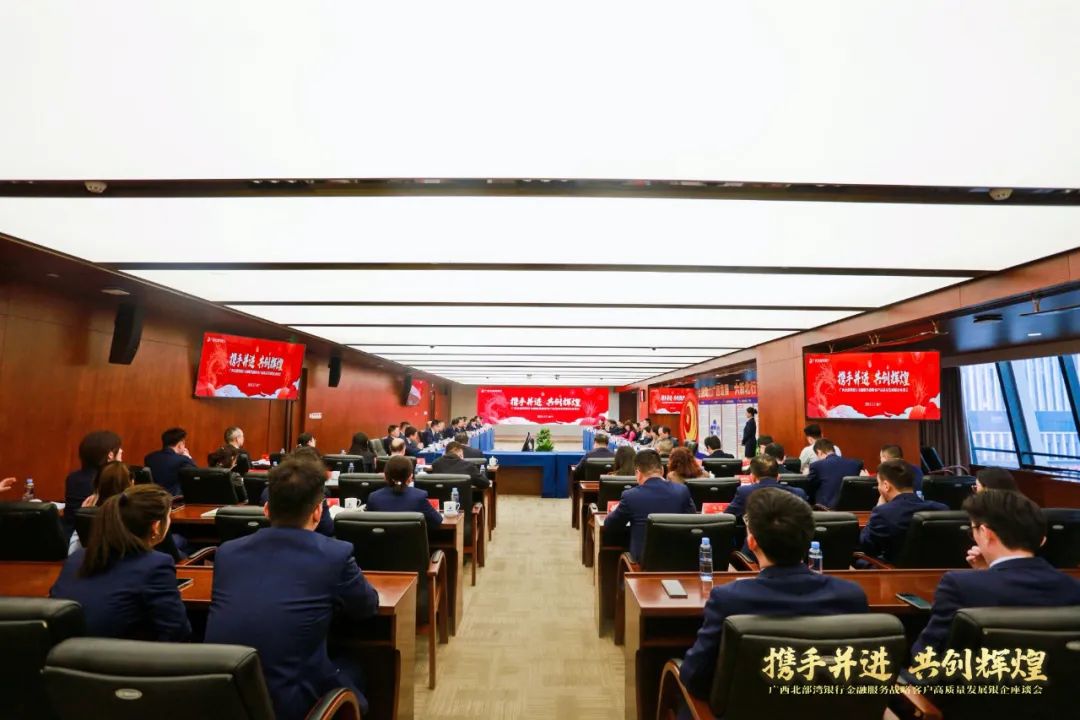 本次活动由北部湾银行党委副书记、行长纪志顺主持,北部湾银行党委书记、董事长黎栋国致辞,北部湾银行行长助理、营业部(战略客户部)总经理黄林平介绍北行政策、产品和服务,17家北行战略客户重要领导莅临并发表讲话。